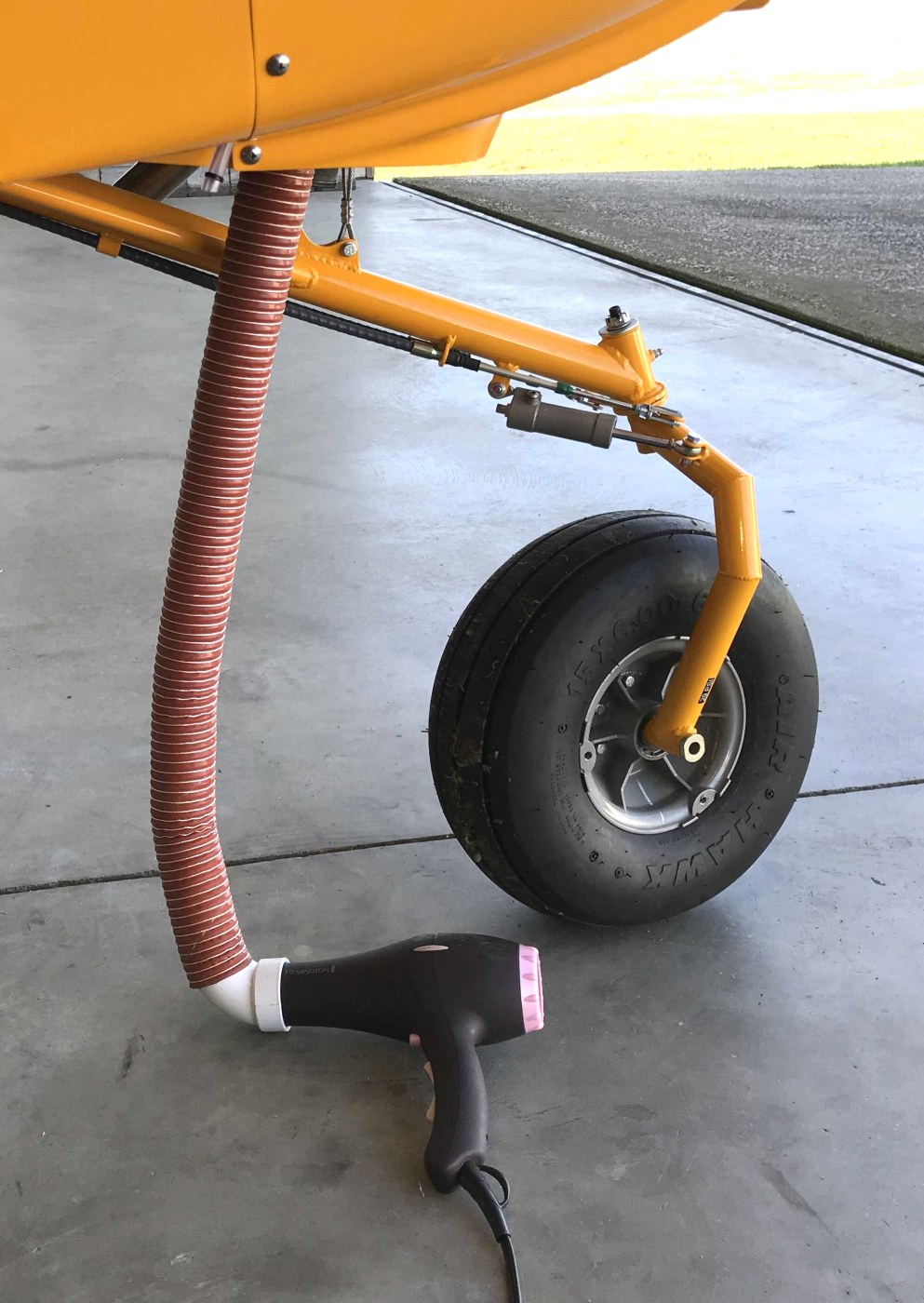Also on this web page is a photo showing the special air nozzle we use to make putting air in the nose wheel inner tube much easier.