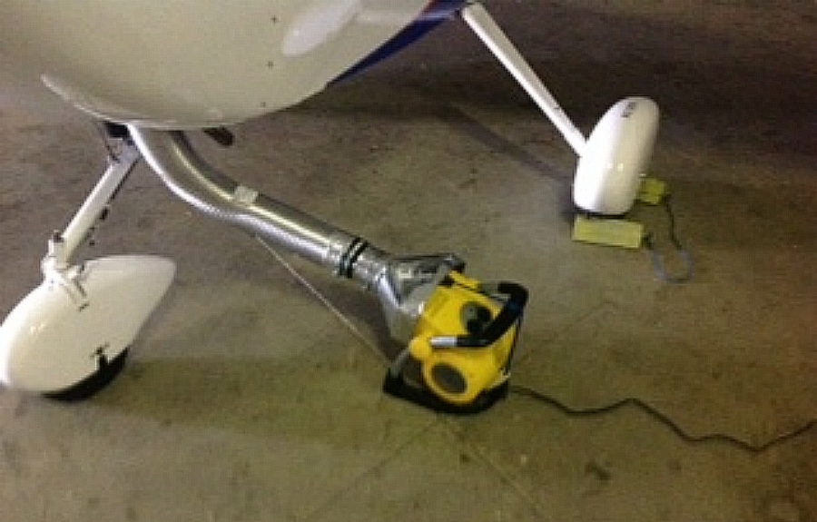 with his A240 at the GPE Flight School in Wilmington, Ohio. Dave says that the electric heater is a Stanley model 675919,