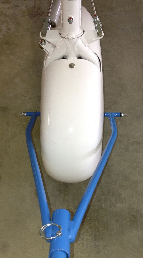 (easy to do, and just hardware store items). To use the towbar, you sort of slide it under the wheel pant and then carefully lifting one side